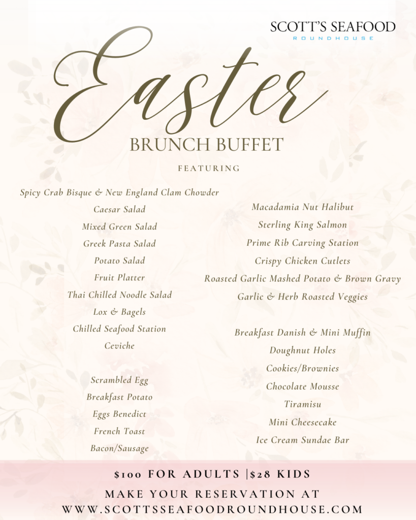 Join us for a fabulous Easter Brunch Buffet at Scott’s on Sunday April, 5th in Historic Folsom. MAKE A RESERVATION HERE