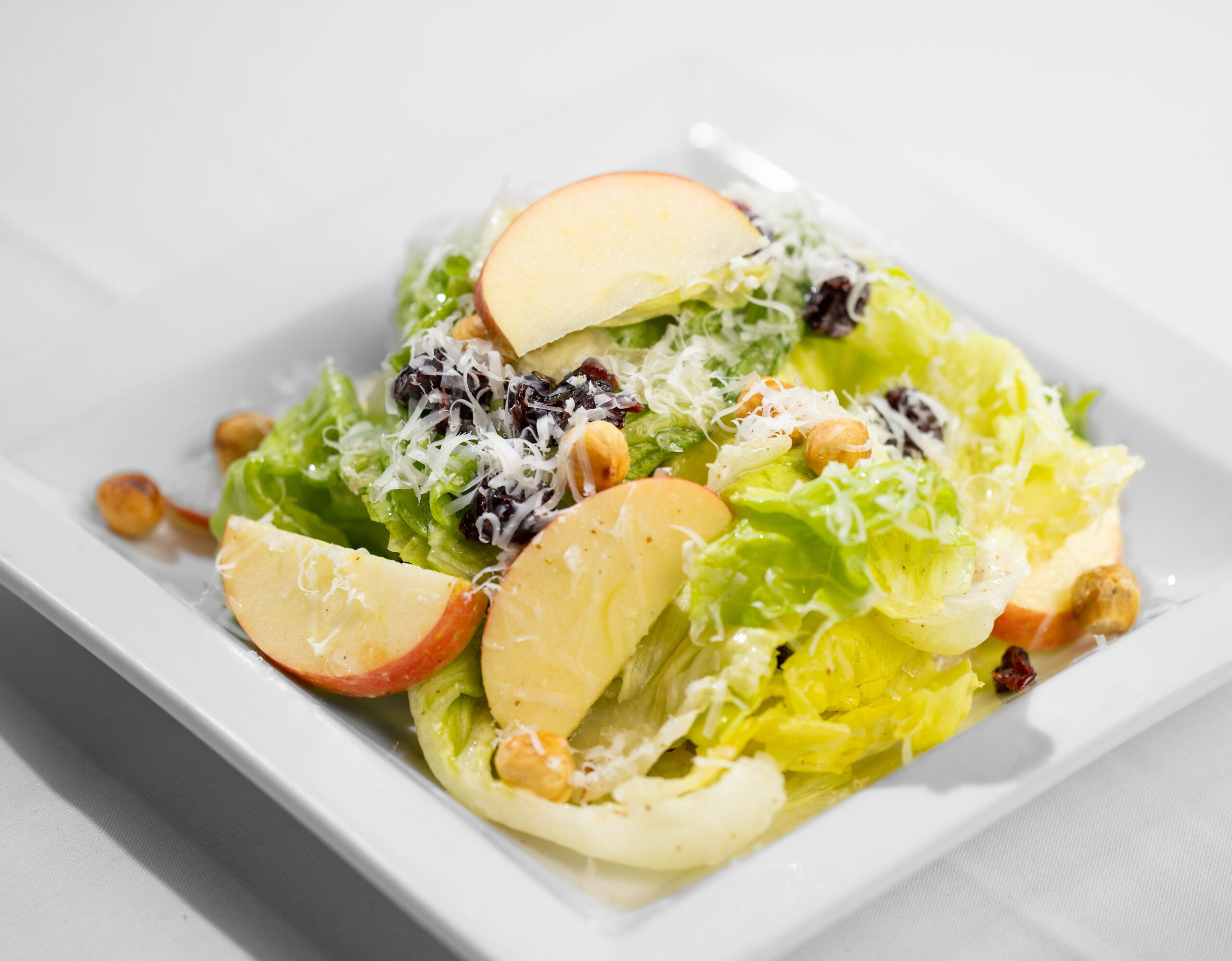 Butter lettuce, larson farms honey crisp apples, midnight moon aged goat gouda, hazelnuts, dried cranberries, apple cider vinaigrette