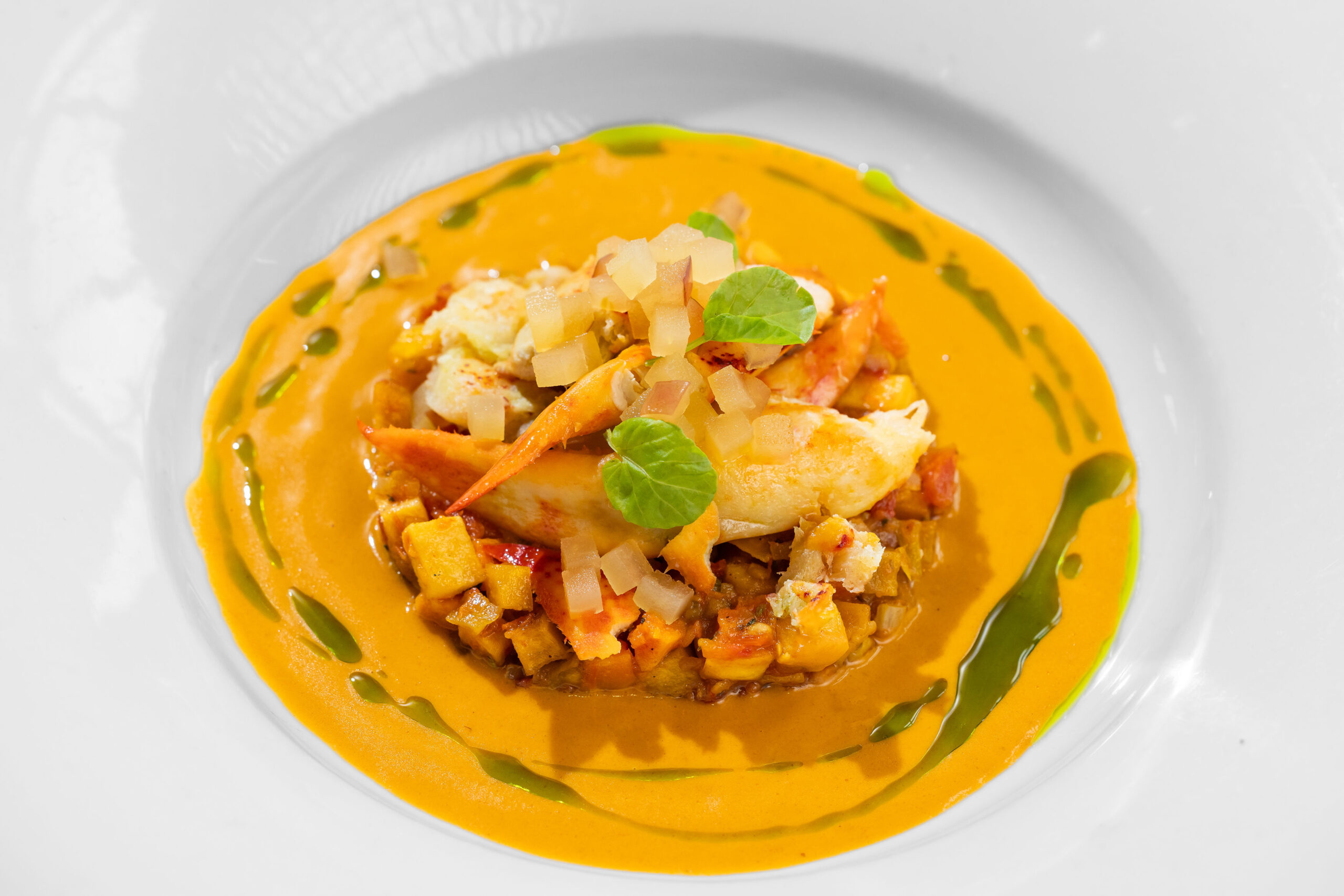 Lobster bisque, fall ratatouille, tarragon oil, pickled larson farms honey crisp apples